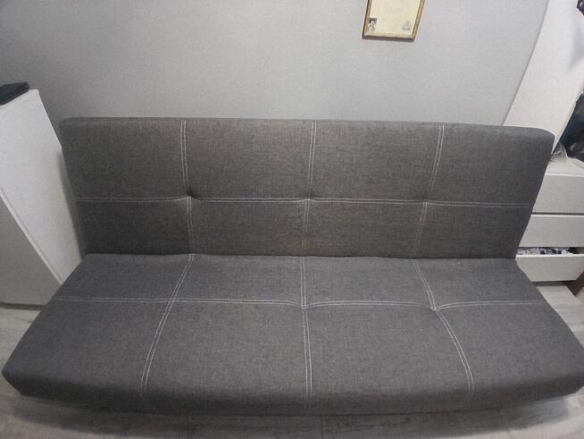 Szara rozkładana sofa, która może posłużyć jako wygodne miejsce do odpoczynku. Mebel jest używany, ale w bardzo dobrym ...