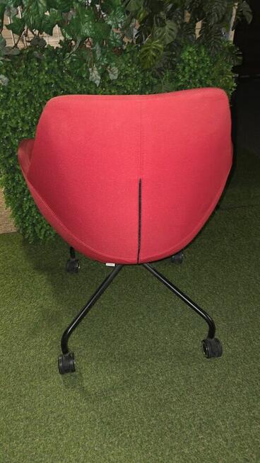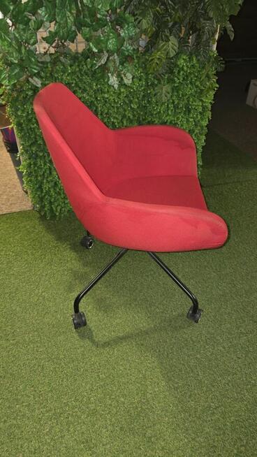 Czerwone obrotowe krzesło biurowe w dobrym stanie. Odpowiednie do użytku w domu lub biurze. Posiada kółka, dzięki czemu ...
