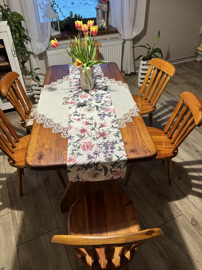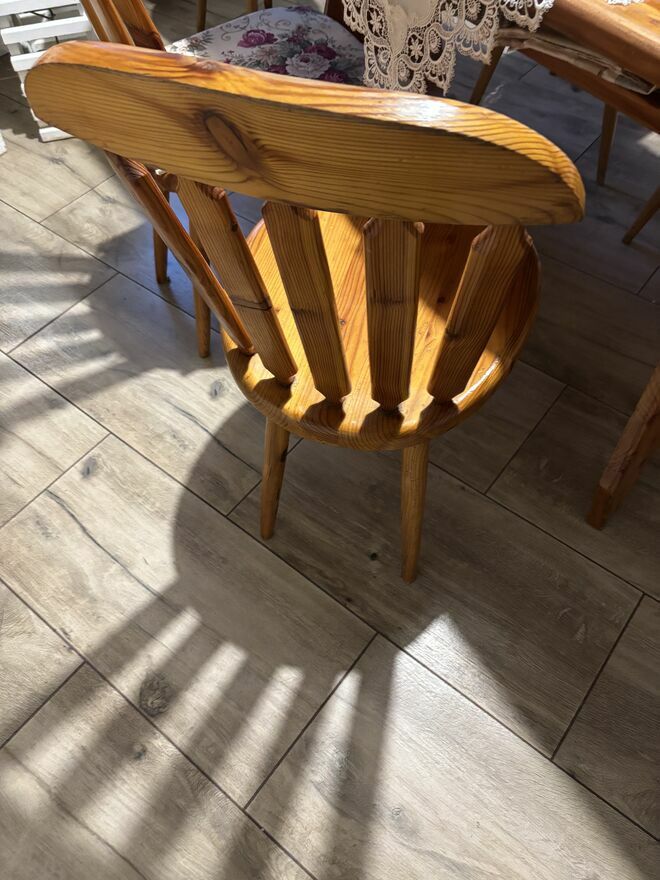 Sprzedam stół z sześcioma krzesłami: drzewo modrzew. Odbiór tylko osobisty.Sprawdź zainteresowanie tym ogłoszeniem
